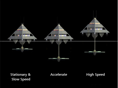 HOW THE CONCEPT VESSEL WOULD FLOAT/RISE AT VARIOUS SPEEDS :